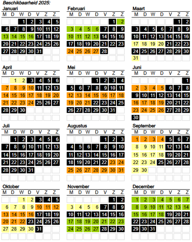 Vermeld graag uw naam en telefoonnummer en de gewenste huurdata, u wordt dan zo snel mogelijk teruggebeld met de bevestiging. Annuleren kan tot 8 weken van te voren kosteloos. U ontvangt uw factuur tussen 4-6 weken voor aanvang van de huurperiode en uw betaling graag meteen na ontvangst van de factuur. Wij verheugen ons op uw komst!